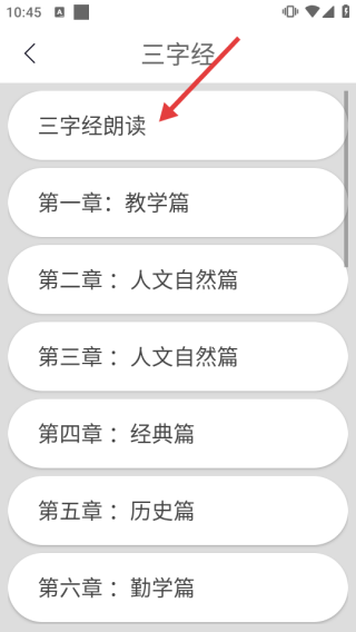 2、在三字经页,点击【三字经朗读】,进入朗读界面。