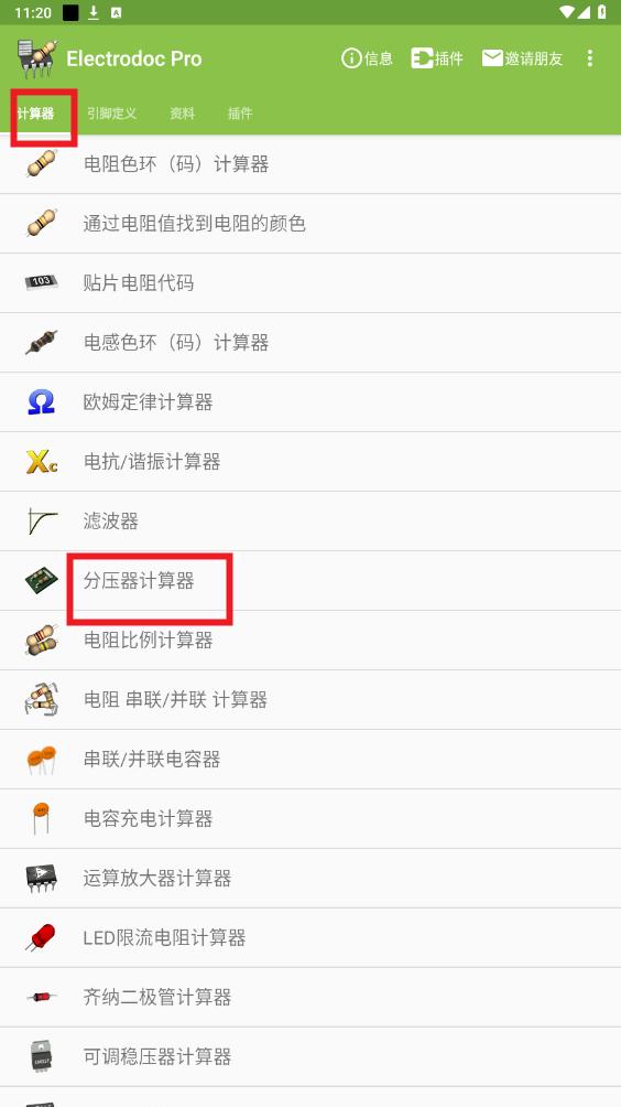进入首页选择所需功能和工具,比如计算器-分压计算器