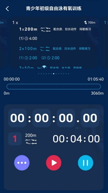 这款游泳训练工具app,侧重多节组合式的训练方法执行,通过模块叠加方式,将繁琐的训练内容进行优化组合。