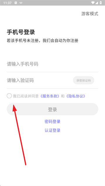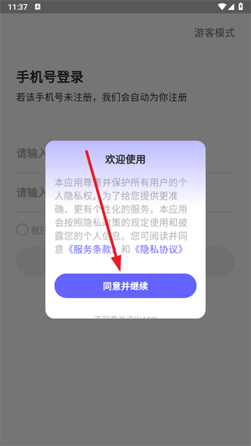 3、输入手机号和验证码,勾选用户协议和隐私政策
