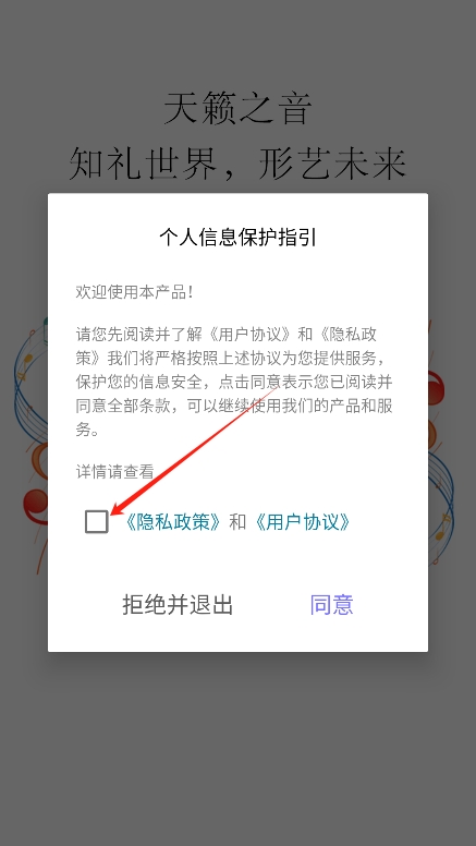 2、进入后阅读并同意小提琴谱app的用户协议