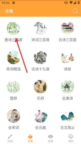 1、打开APP,点击底部【诗集】进入诗集分类页。