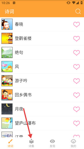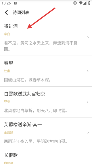 2、在诗集列表中,选择感兴趣的诗词。