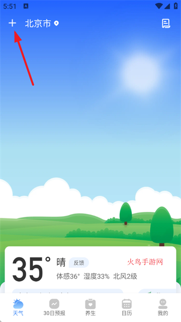 1、首先打开今日天气app,点击左上角的“+”图标;
