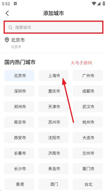 3、选择一个你想要查询的城市的天气,最后返回首页即可添加成功。