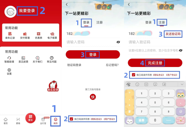 打开个旧公交App,点击右下角“我的”,再点击上方“我要登录”,选择“登录”或“注册”。