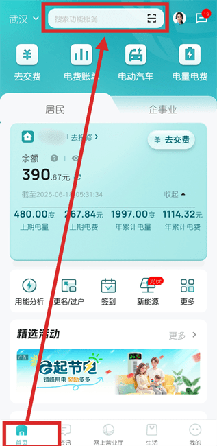 1.在本站下载“国家电网”APP,注册并实名认证后在【首页】点击上方搜索