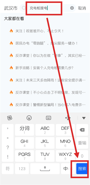 2.在搜索框输入【充电桩接电】或【电动汽车】。