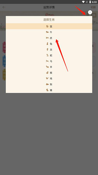 6、如果想查看运势如何,在切换里找到你的生肖;