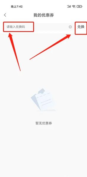第三步,我们进入我的优惠券界面,输入兑换码,点击【兑换】选项即可。