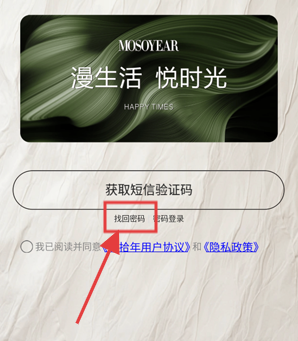 打开你的沫拾年网咖app,在登录界面点击下方的找回密码功能。