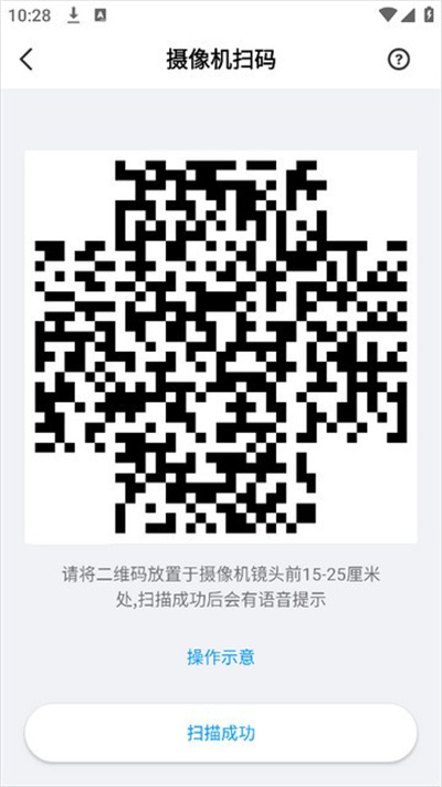 4.最后请将二维码放置于摄像机镜头前15—25厘米处,扫描成功后会有语音提示。