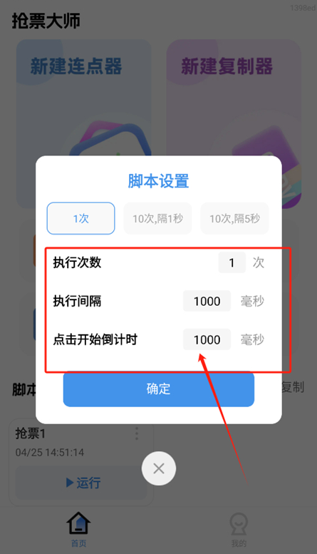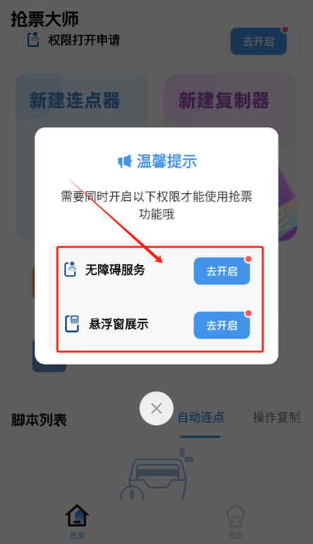 抢票大师,抢票利器!可新建连点器、复制器,脚本灵活设置,实现快速点击与复制抢票。内置新人教程,助您快速上手。还有脚本列表功能,方便编辑删除。告别抢票焦虑,用抢票大师,轻松锁定心仪票务!