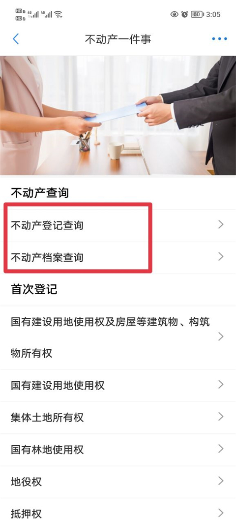 2、然后点击不动产功能。