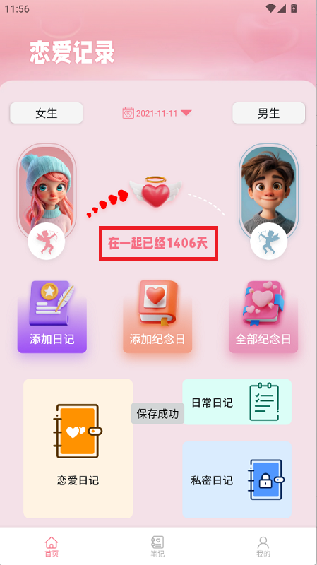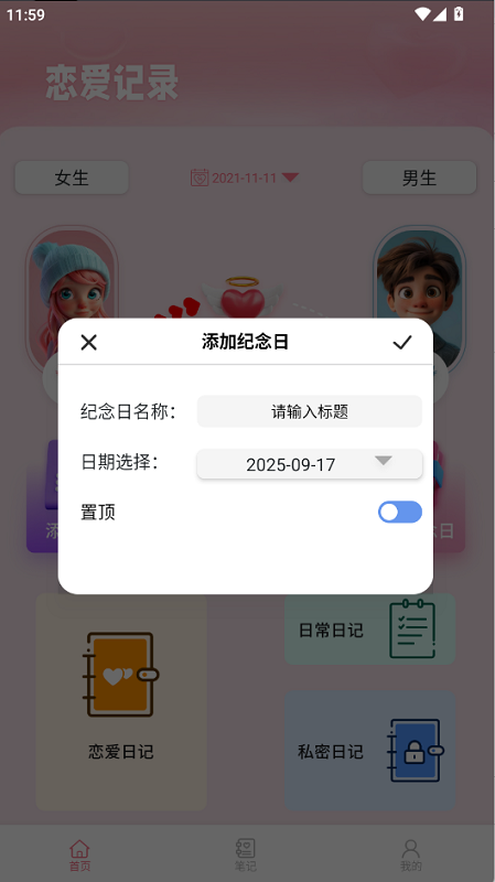 恋爱日记:用图片、文字记录下幸福点滴,留存彼此间的美好回忆。