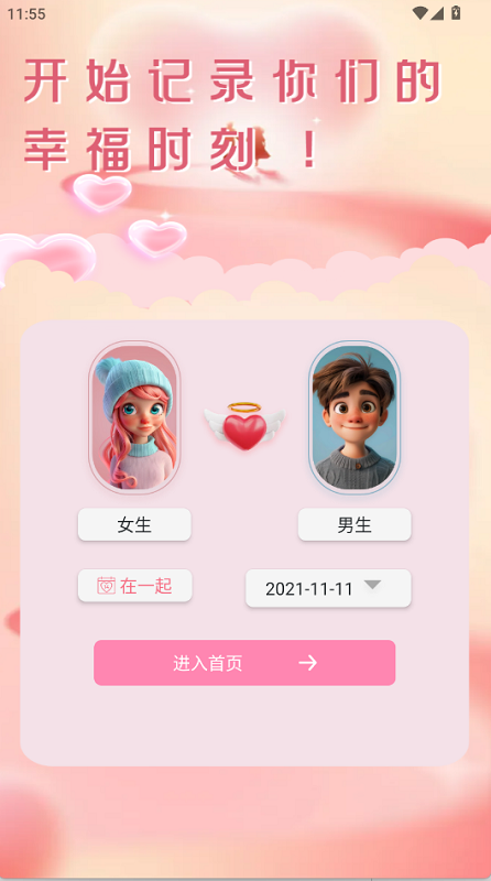 1.打开微光纪念盒子,能记录下恋爱开始的日子。