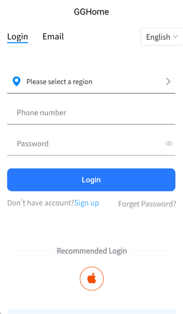 下载安装并打开高石云享app,进入登录界面后点击右上角中文按钮