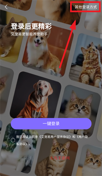 输入手机号,密码,勾选我已阅读并同意《艾宠易用户服务协议》和《用户隐私协议》,点击登录/注册即可