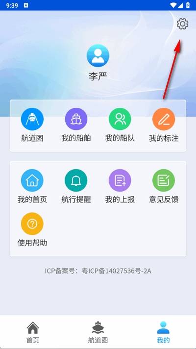 1、在我的中点击右上角设置图标。