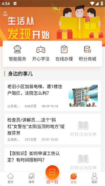 3、发现:丰富多样的法律相关的文章活动内容等你阅读。