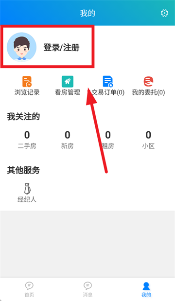 下载安装并打开宝日找房app,进入后首页后点击我的