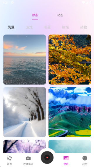 4、在壁纸页面,选择静态或动态壁纸,按分类挑选喜欢的壁纸。