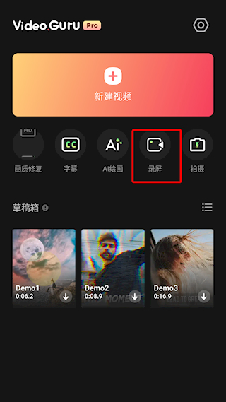 1、打开VideoGuru视频编辑app,点击录屏功能
