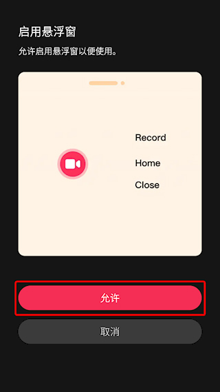 2、点击允许,根据提示启用悬浮窗
