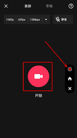 4、点击屏幕中间按钮或使用悬浮球开始录屏