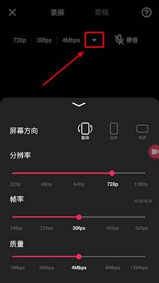 3、点击上方的箭头调整录屏参数