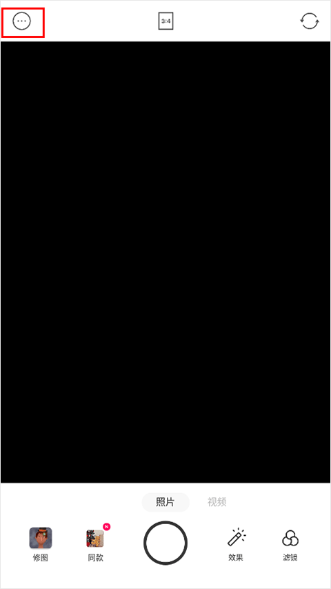 1、首先打开美食相机foodie,进入拍摄界面后,点击左上角的三个【…】图标,见下图;