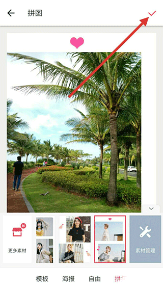 4、设置模板和排列方式之后,点击右上角的“√”这个符号,表示拼图完成