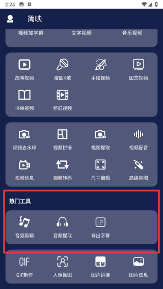 3、下滑用热门工具(音频剪辑、提取)辅助制作。