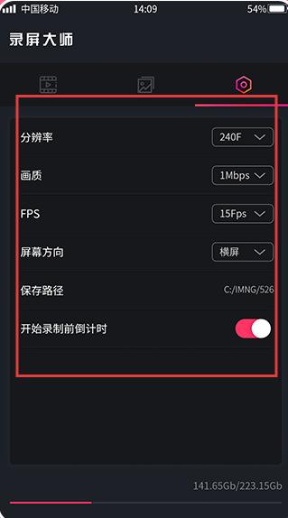 2、设置界面,可调整分辨率、画质、帧率FPS、屏幕方向、保存路径等参数,还能开启或关闭开始录制前倒计时,帮助用户根据需求定制录屏效果。