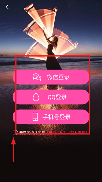 3、选择一种自己喜欢的登录方式,记得勾选用户协议和隐私政策