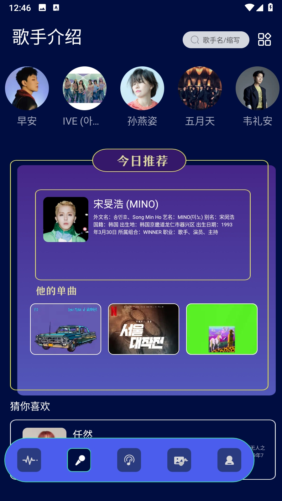 2、还可以看到国内外优质歌手的简介,以后可以搜索自己喜欢的歌手。