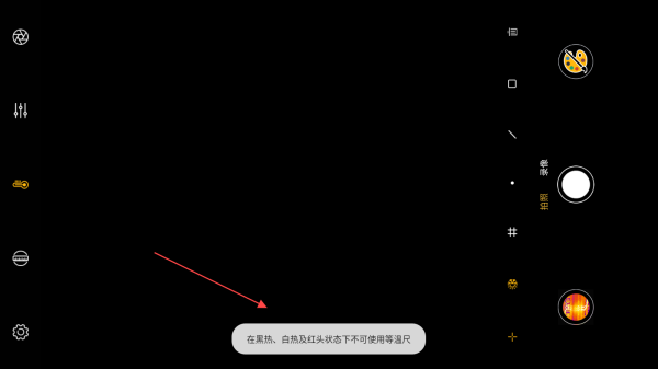 2、左侧功能区域分别是开关按钮、拍照按钮、录像按钮、测温按钮、清除按钮、快门按钮