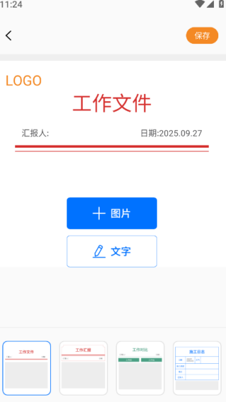 3、支持上传图片及文字,选择相关logo,进行工作文件汇报。