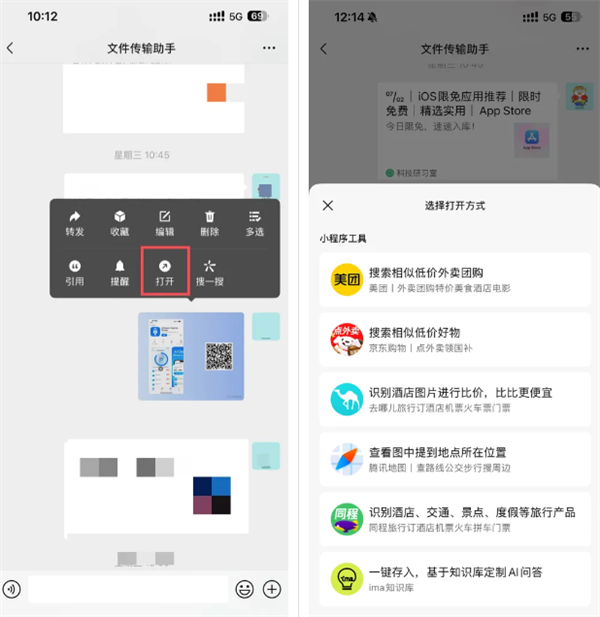 聊天中长按图片,弹框中新增了「打开」按钮,