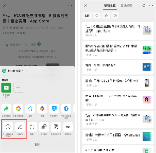 底部弹框新增了「赞、收藏和最近浏览」和「划线记录」,