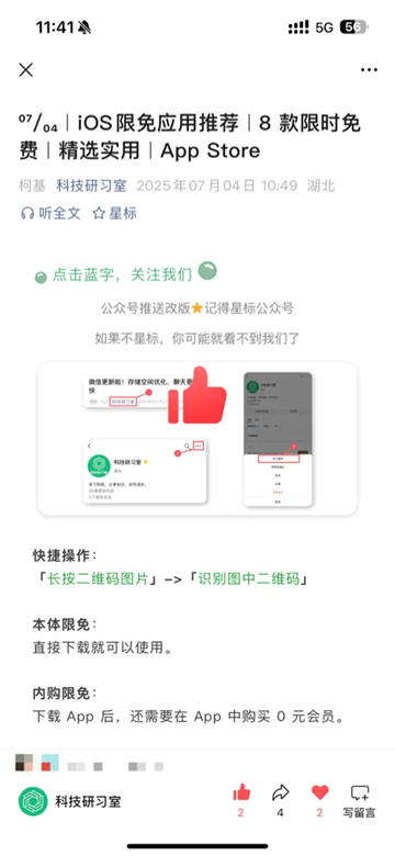 双击公众号文章的任意位置,可以快速地给文章点赞。