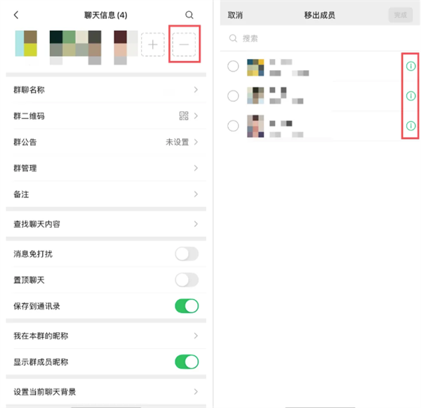 当你微信群主时,点击移除按钮,
