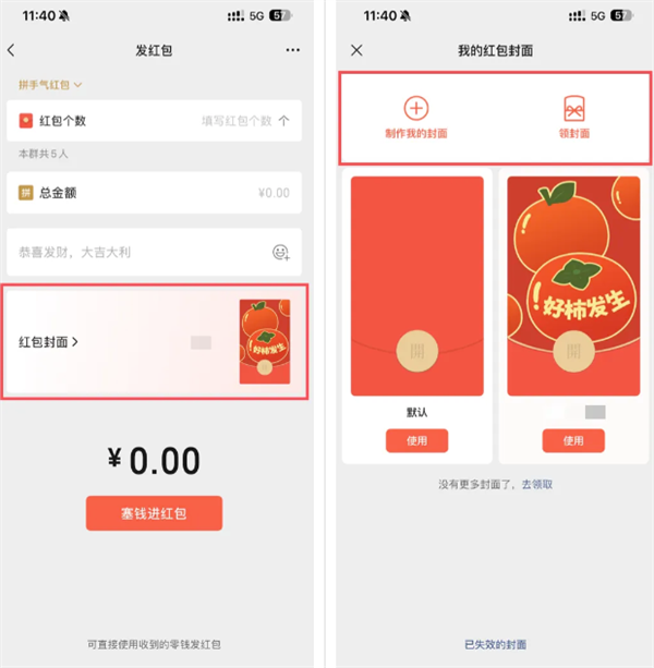 「我的红包封面」界面也进行了改版。