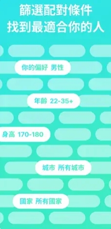 条件筛选:可针对年龄、地点、距离、性别等条件进行筛选,找到*适合你的配对人选
