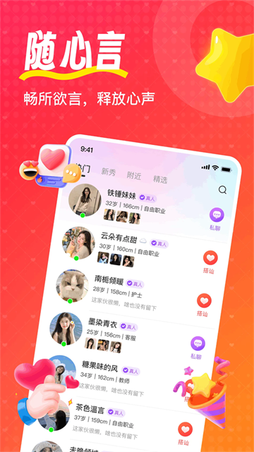 【精准推荐】海量用户,一键打招呼,告别尬聊;迅速开启火热聊天;