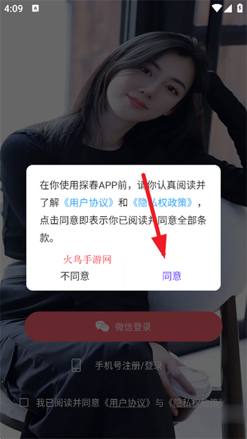 在本站下载APP后进入,点击同意