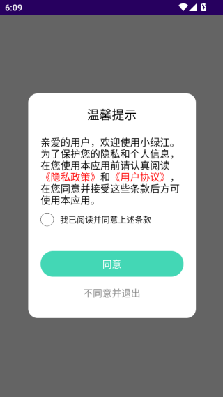 1、打开app,在弹出来的温馨提示中点击同意即可。