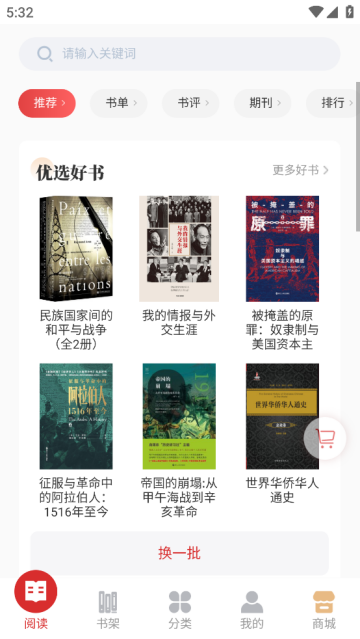 世知书屋APP是世界知识出版社旗下移动数字阅读产品,办社宗旨为“传承红色基因、理性认识世界、服务中国外交”。