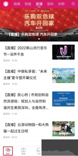 1、在第一现场手机客户端首页里点击左上角的头像图标。