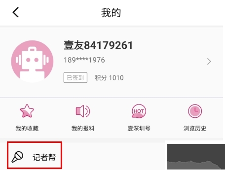 2、进入个人页面后点击记者帮图标。